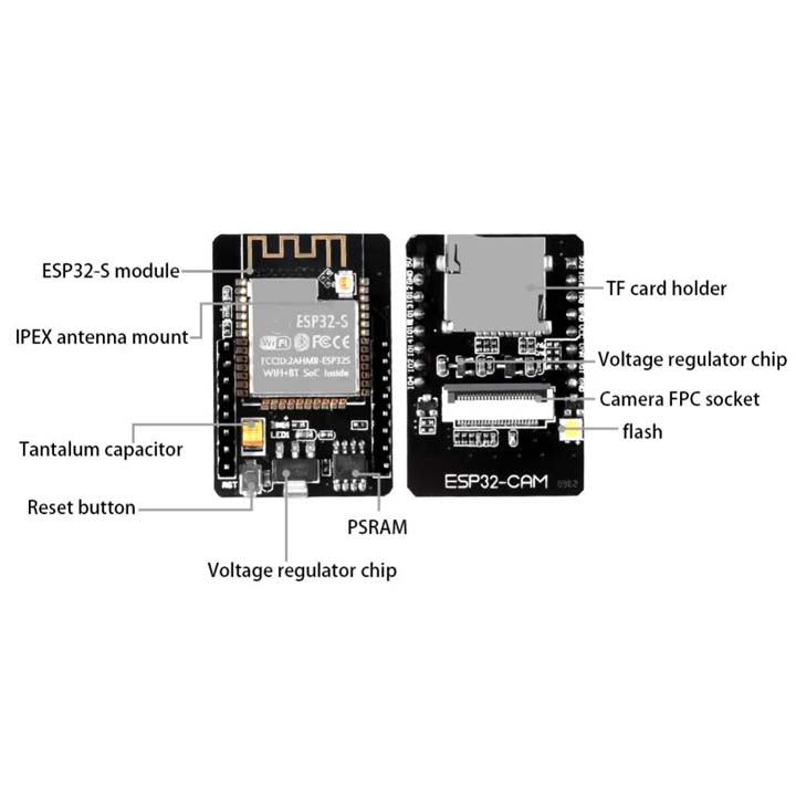 - Module Camera tích hợp wifi + bluetooth ESP32-CAM là mạch tích hợp với bộ xử lý chính là module ESP32 + Camera OV2640 được sử dụng trong các ứng dụng truyền hình ảnh, xử lý ảnh qua Wifi, Bluetooth hoặc các ứng dụng IoT.