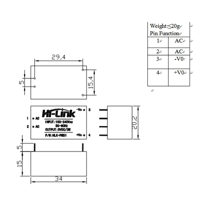 Module Nguồn AC To DC 5VDC 3W HLK-PM01