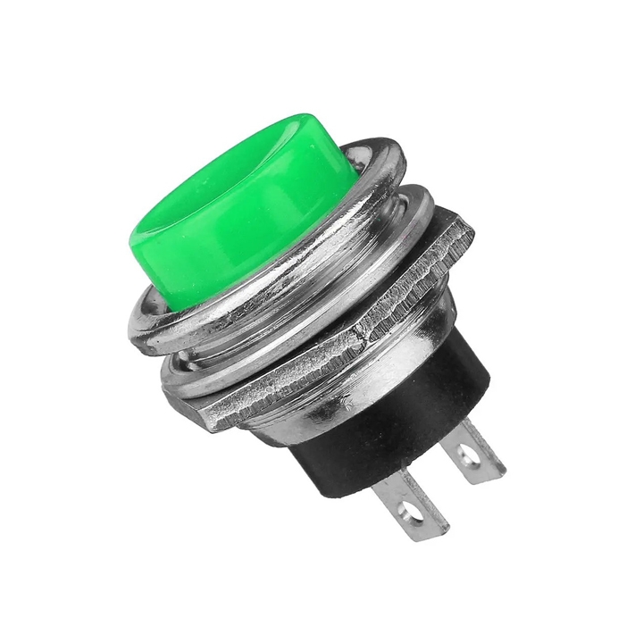 Nút Nhấn Đề To Nhấn Nhả Vỏ Sắt 3A 125V 2 Chân Màu Xanh Lá Cây