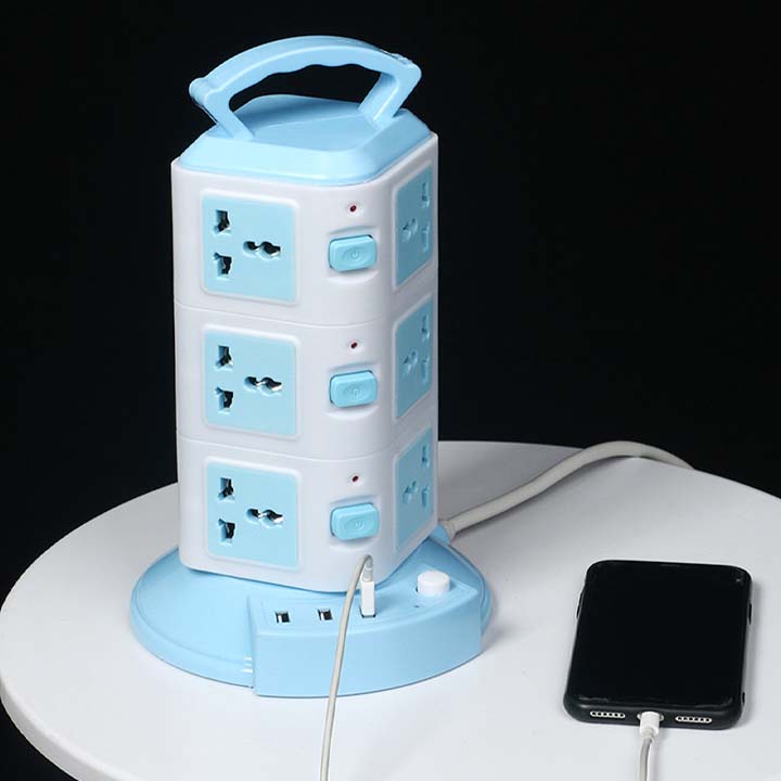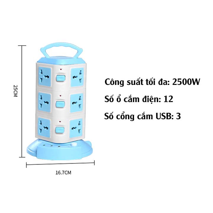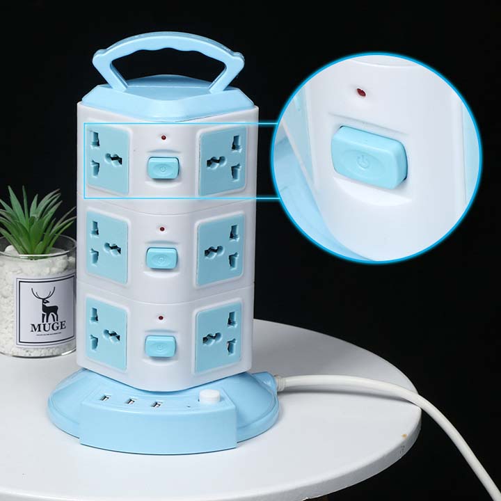 Ổ Cắm Điện Đứng 3 Tầng 12 Lỗ Cắm 3 Cổng Sạc USB