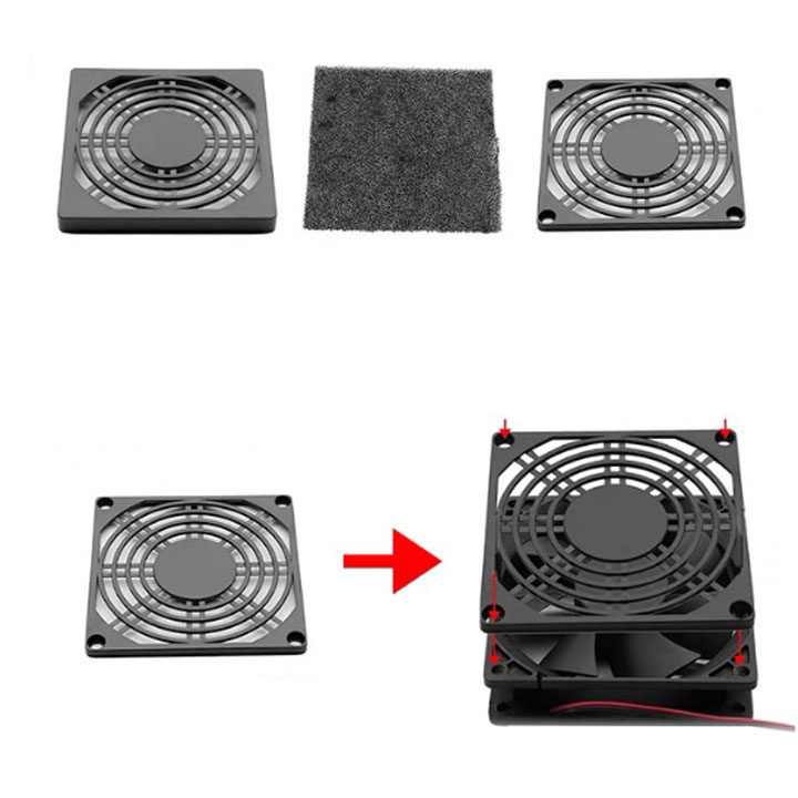 Bộ 3 Món Tấm Bảo Vệ Quạt Tản Nhiệt Lọc Bụi Bẩn Màu Đen Nhựa ABS