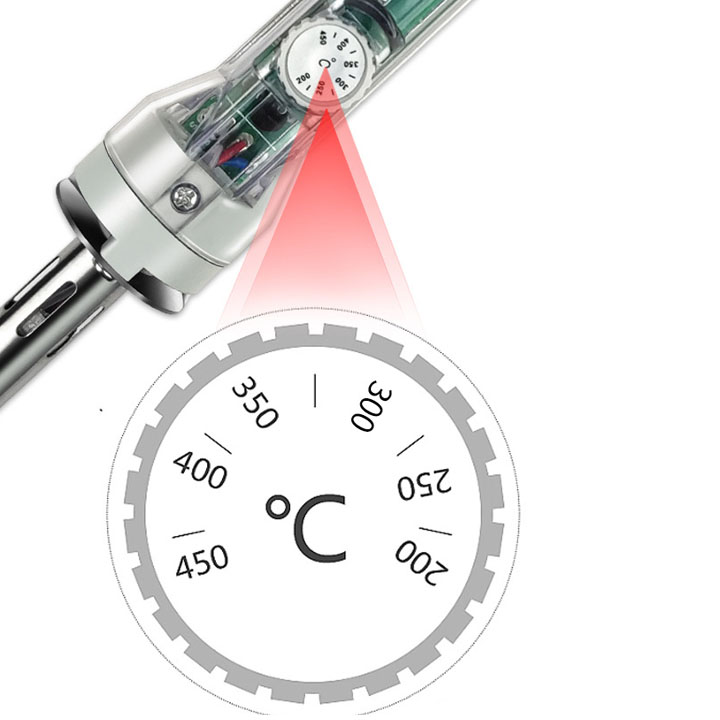 - Điều chỉnh nhiệt độ: Thiết bị này có thể điều chỉnh nhiệt độ lên đến 450 độ C, giúp điều chỉnh và điều khiển nhiệt độ hàn theo nhu cầu cụ thể của từng ứng dụng hàn.