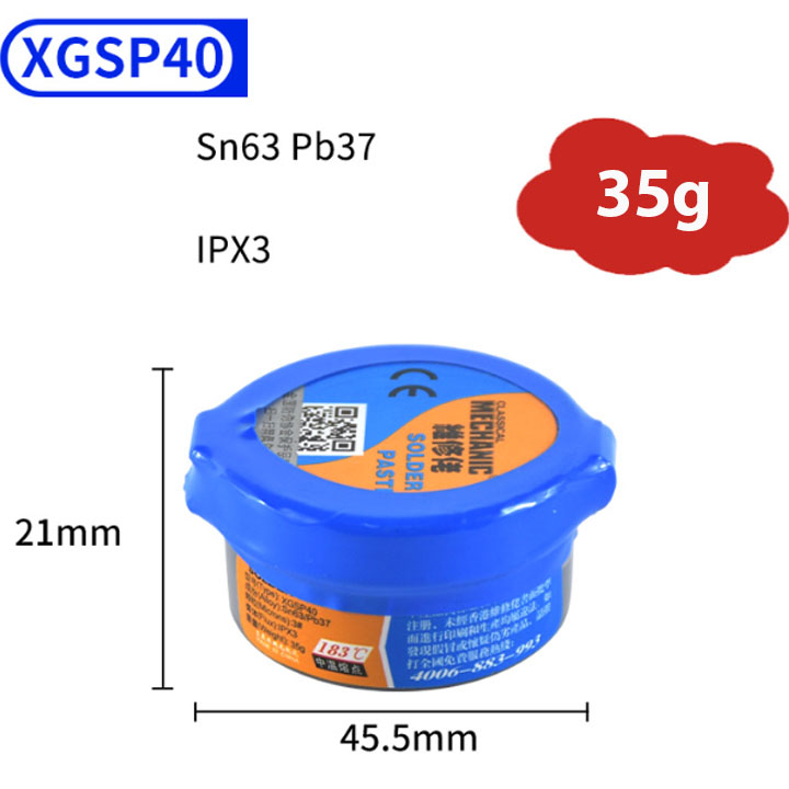 - Thiếc bột MECHANIC Solder Paste còn gọi là kem hàn, được sử dụng cho việc hàn và sửa chữa linh kiện dán bề mặt trên mạch điện tử. Phù hợp cho thợ sửa chữa điện tử, điện thoại di động, máy tính bảng, máy tính, laptop.