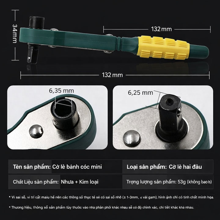 Chiều cao đầu bánh cóc 34mm, dễ tiếp cận vị trí khó