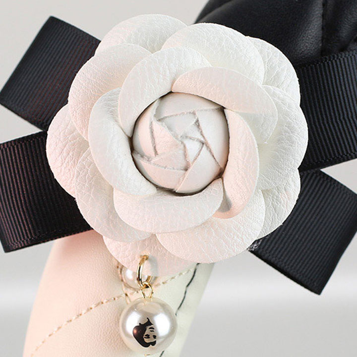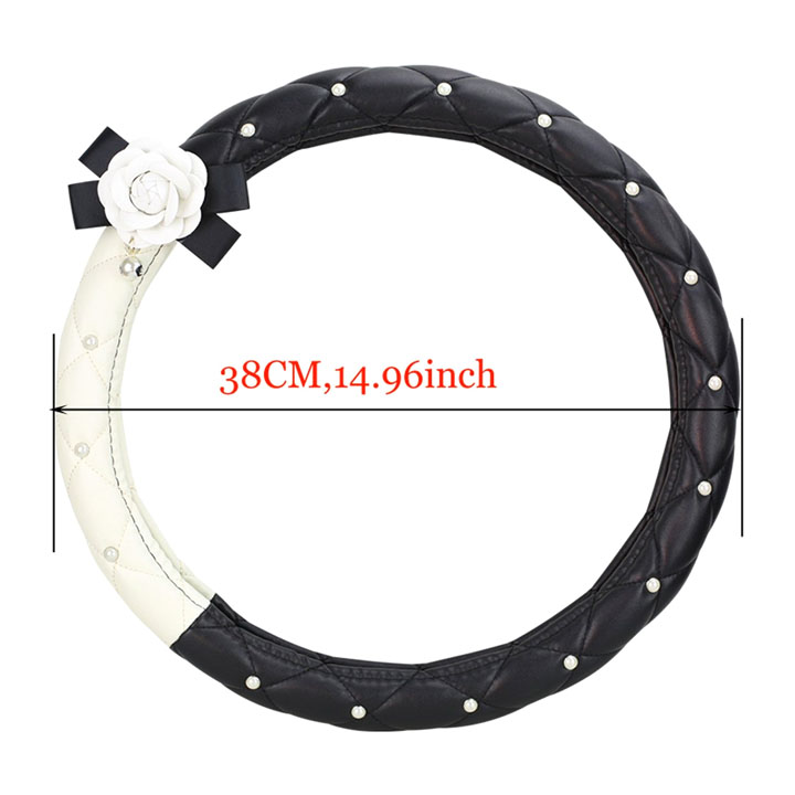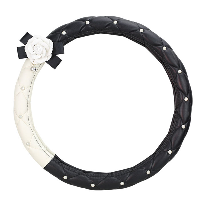 Vỏ Bọc Da Vô Lăng Ô Tô Họa Tiết Hoa Trà Dành Cho Phái Nữ Màu Sắc Trắng Đen