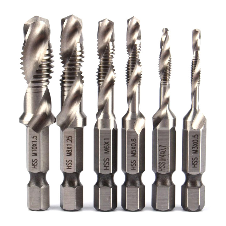 Bộ 6 Mũi Taro Kiêm Khoan Lỗ Tạo Ren Tích Hợp 2 Trong 1 Thép Tốc Độ Cao Đuôi Lục Giác 6.35MM